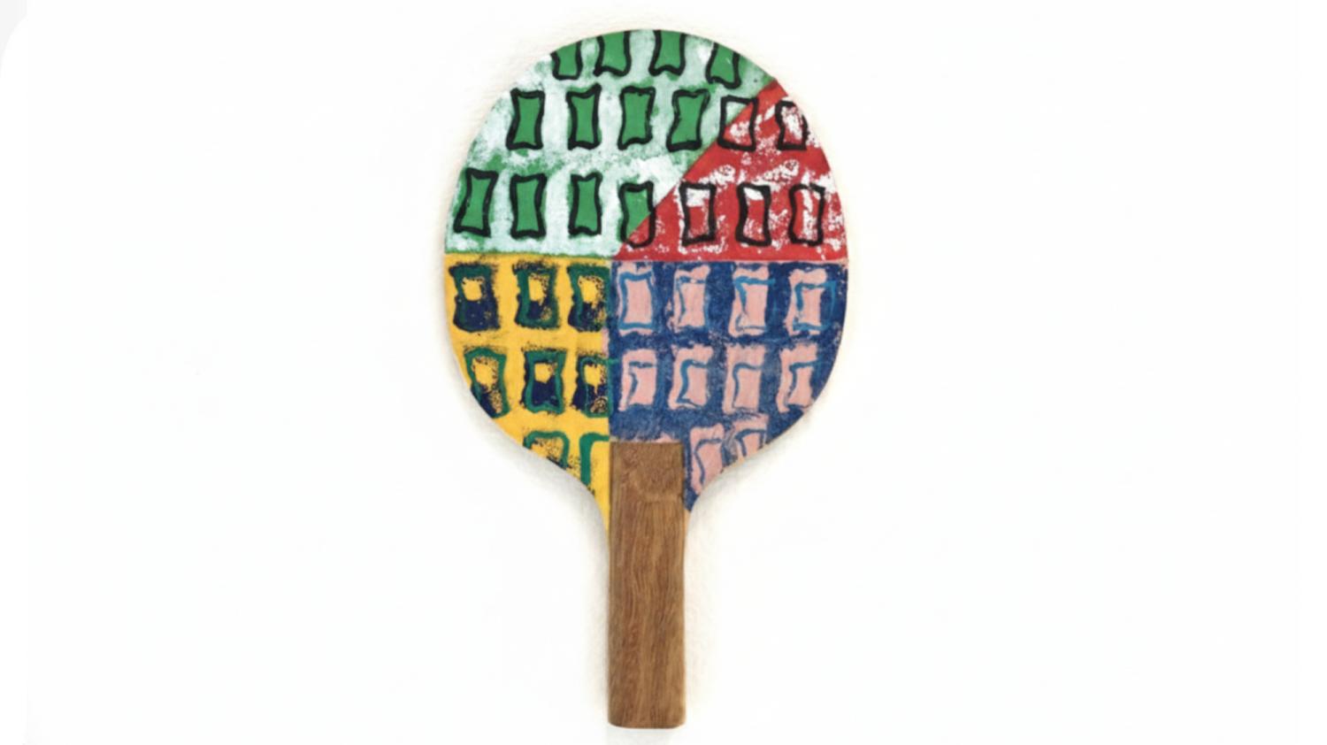 Utiliser des raquettes de ping-pong en bois est tout à fait dans l'esprit du mouvement Supports/Surfaces de Claude Viallat, qui aimait utiliser des supports non conventionnels et des matériaux du quotidien.
